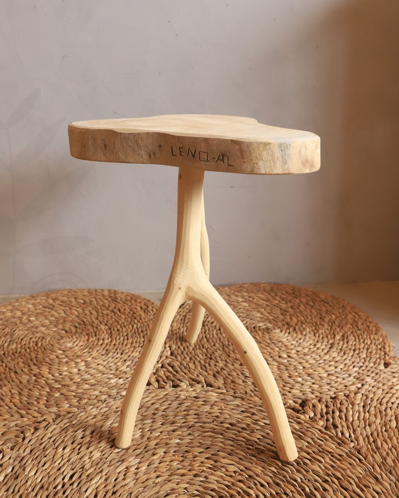 O Banco/Mesa de Madeira do Mestre Leno ressignifica a beleza de galhos secos encontradas pelos caminhos do povoado da Ilha do Ferro-AL. Suas peças representam um novo olhar para a natureza, evidenciando a beleza das formas orgânicas e não convencionais.