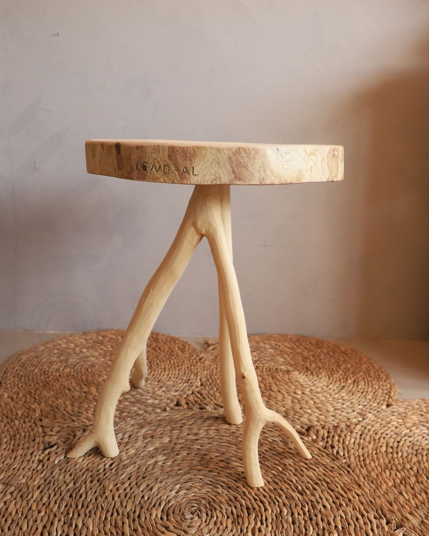 O Banco/Mesa de Madeira do Mestre Leno ressignifica a beleza de galhos secos encontradas pelos caminhos do povoado da Ilha do Ferro-AL. Suas peças representam um novo olhar para a natureza, evidenciando a beleza das formas orgânicas e não convencionais.
