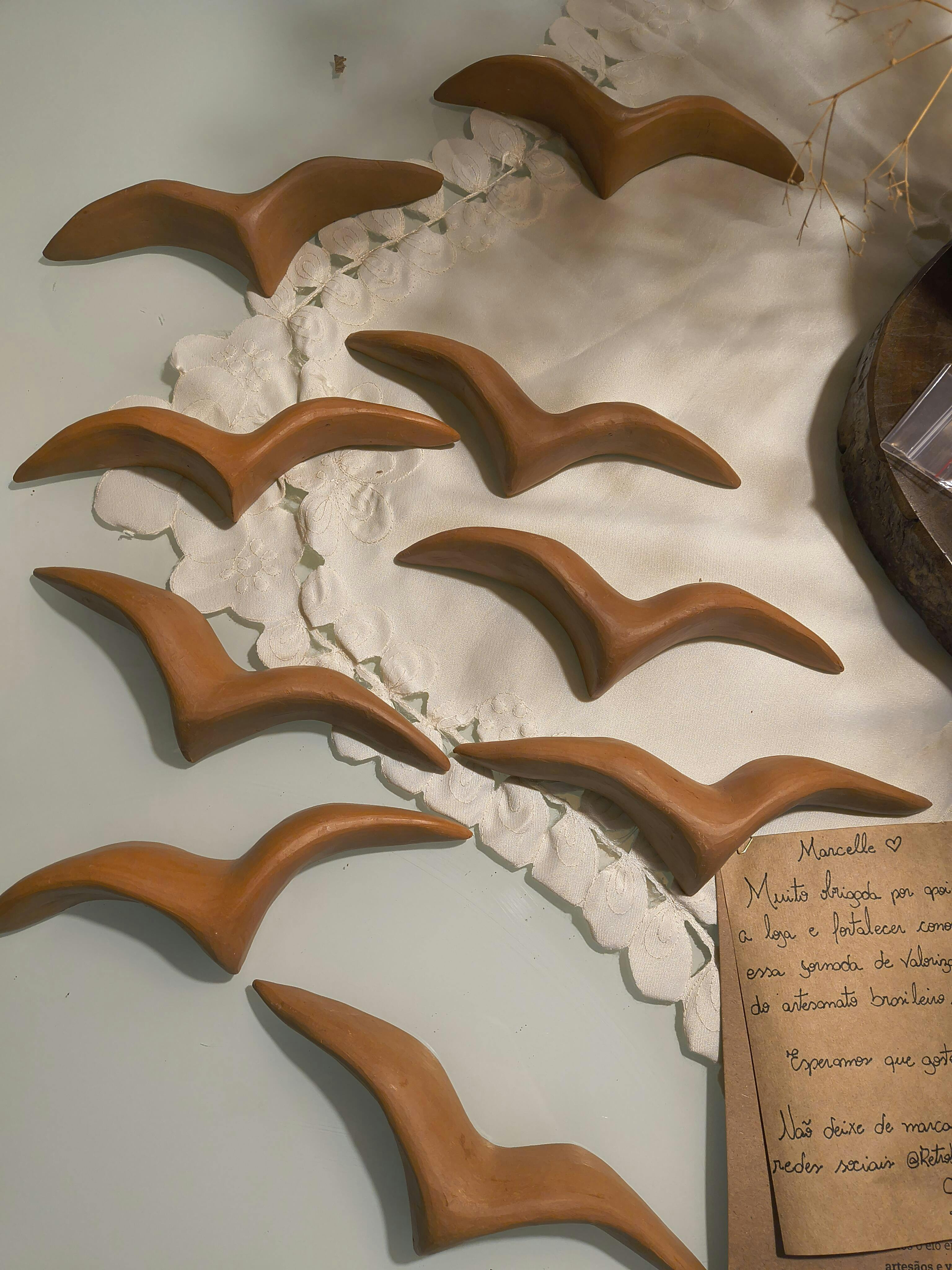 A andorinha de parede feita à mão em cerâmica é moldada com atenção aos detalhes, garantindo que cada peça seja única. As pequenas variações nas cores e formas são características que tornam cada andorinha uma obra de arte exclusiva, ideal para quem valoriza o artesanato e a originalidade.
