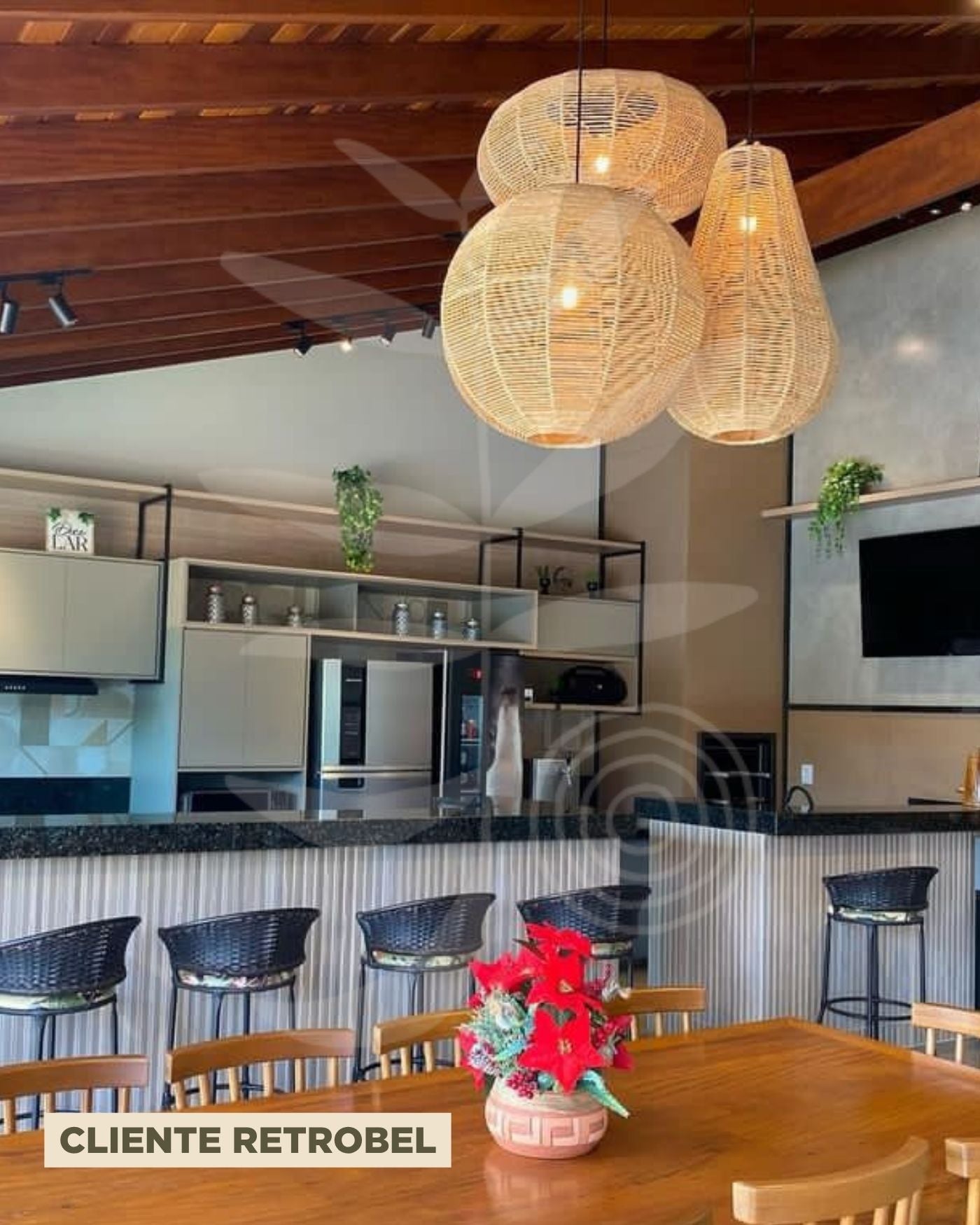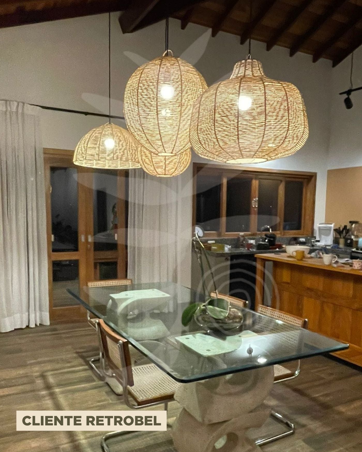 A Luminária Pendente de Palha Aramada Juréia G faz parte da nossa curadoria de luminárias em fibras naturais brasileiras, uma seleção que investe em estudos de tendências e valoriza o artesanato brasileiro.