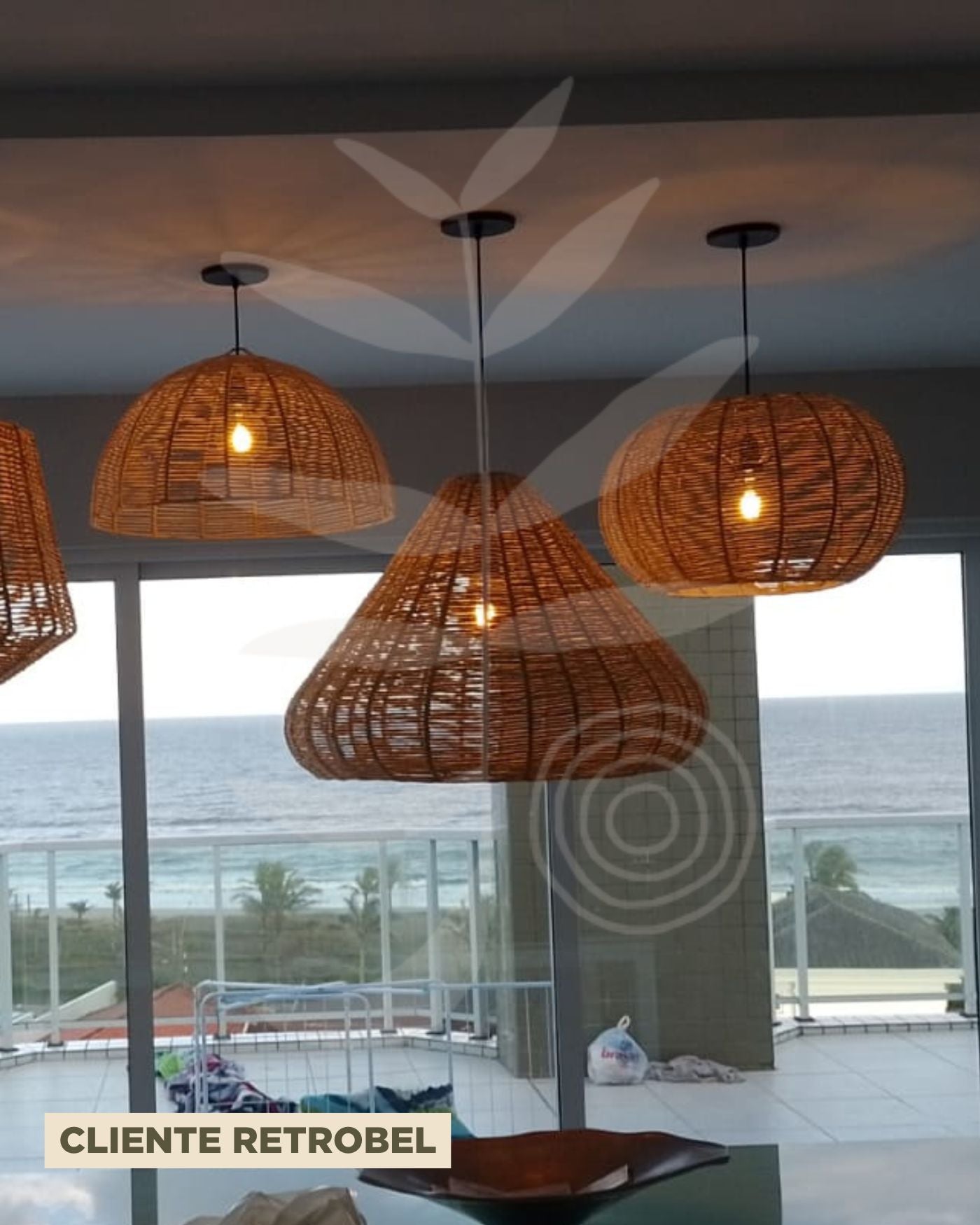 A Luminária Pendente de Palha Aramada Diamante M faz parte da nossa curadoria de luminárias em fibras naturais brasileiras, uma seleção que investe em estudos de tendências e valoriza o artesanato brasileiro.